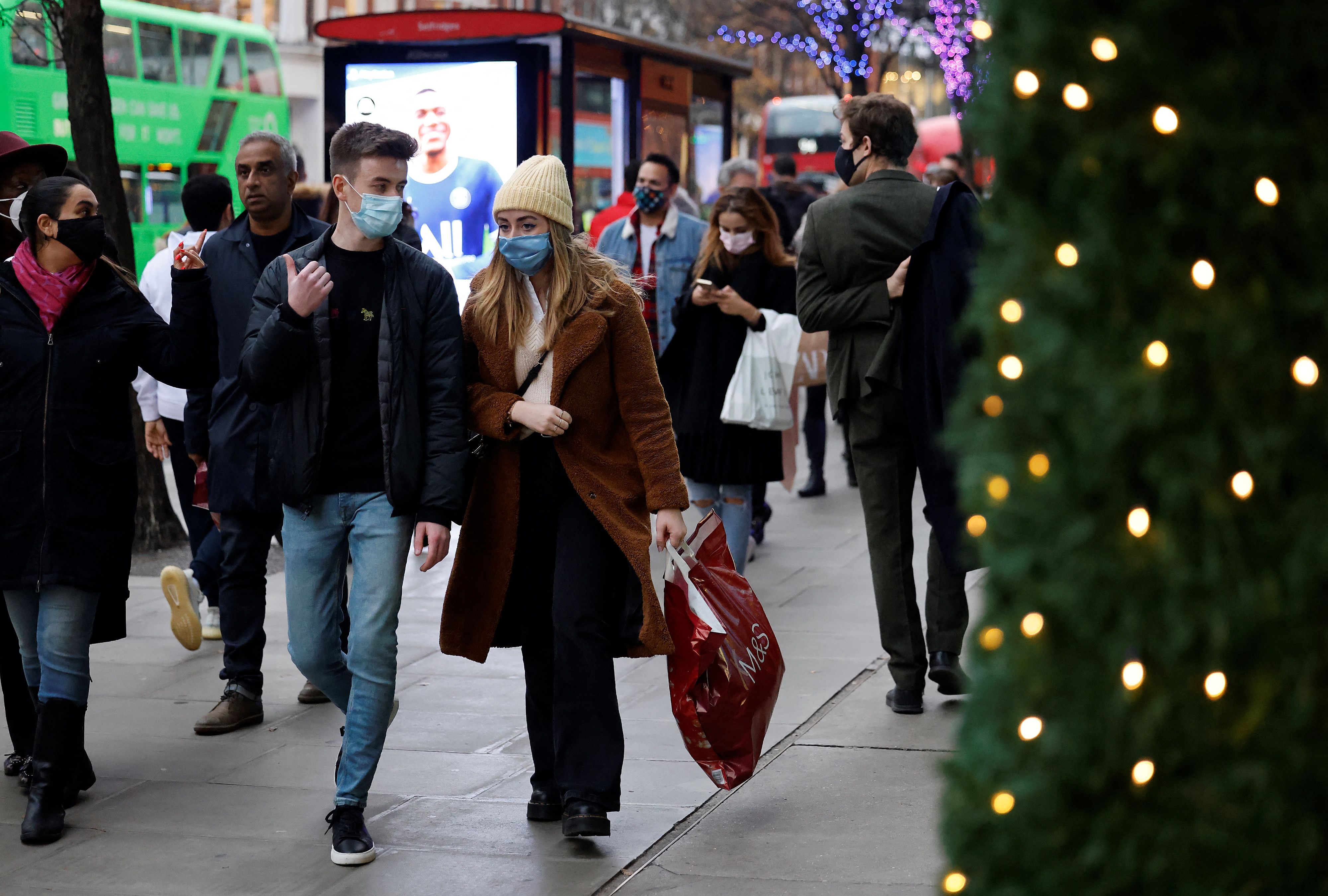 Shoppers walks past stores on the final Saturday before Christmas, on Oxford Street in London on Dec 18, 2021.