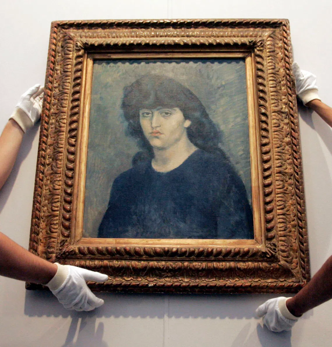 Sao Paulo Museum of Art workers hanging Pablo Picasso's oil painting Portrait of Suzanne Bloch before the museum reopened to visitors, on Jan 11, 2008.