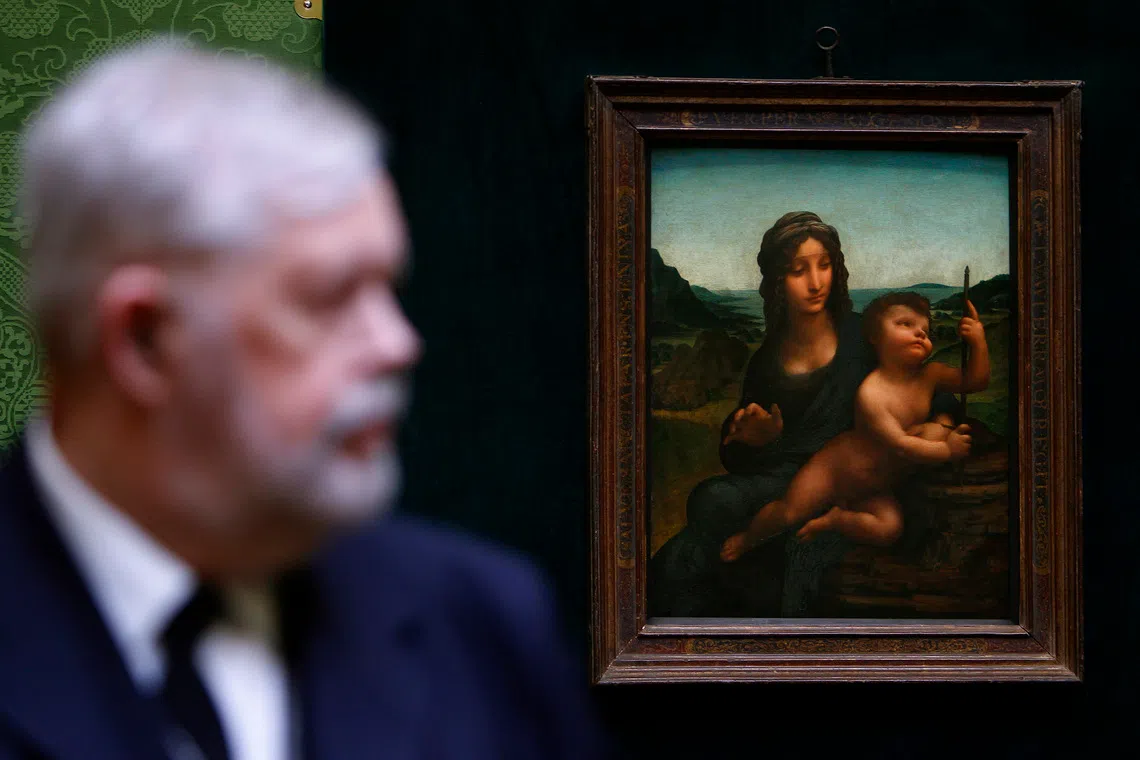 A gallery attendant standing in front of Leonardo da Vinci’s Madonna of the Yarnwinder at the National Gallery of Scotland in Edinburgh, on March 3, 2010.