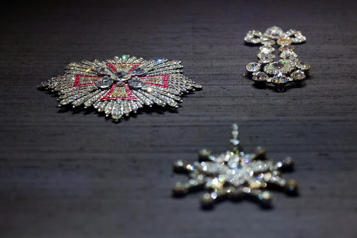 The breast star of the Polish Order of the White Eagle is pictured, as items recovered from a jewel heist at Gruenes Gewoelbe (Green Vault) museum in 2019 went back on display after their restoration, in Dresden, Germany, on Aug 13, 2024.