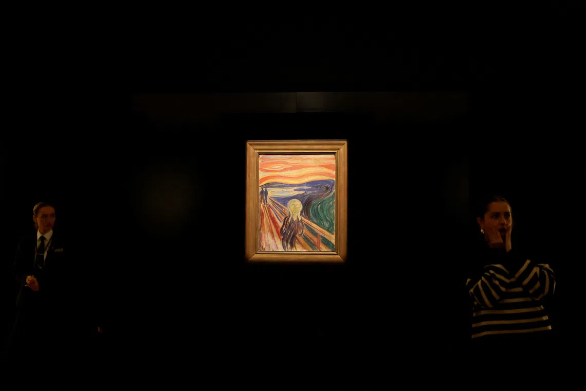A museum worker standing next to one of the versions of Edvard Munch's The Scream as a visitor has her picture taken next to it at the Munch Museum in Oslo, Norway, on Jan 21.
