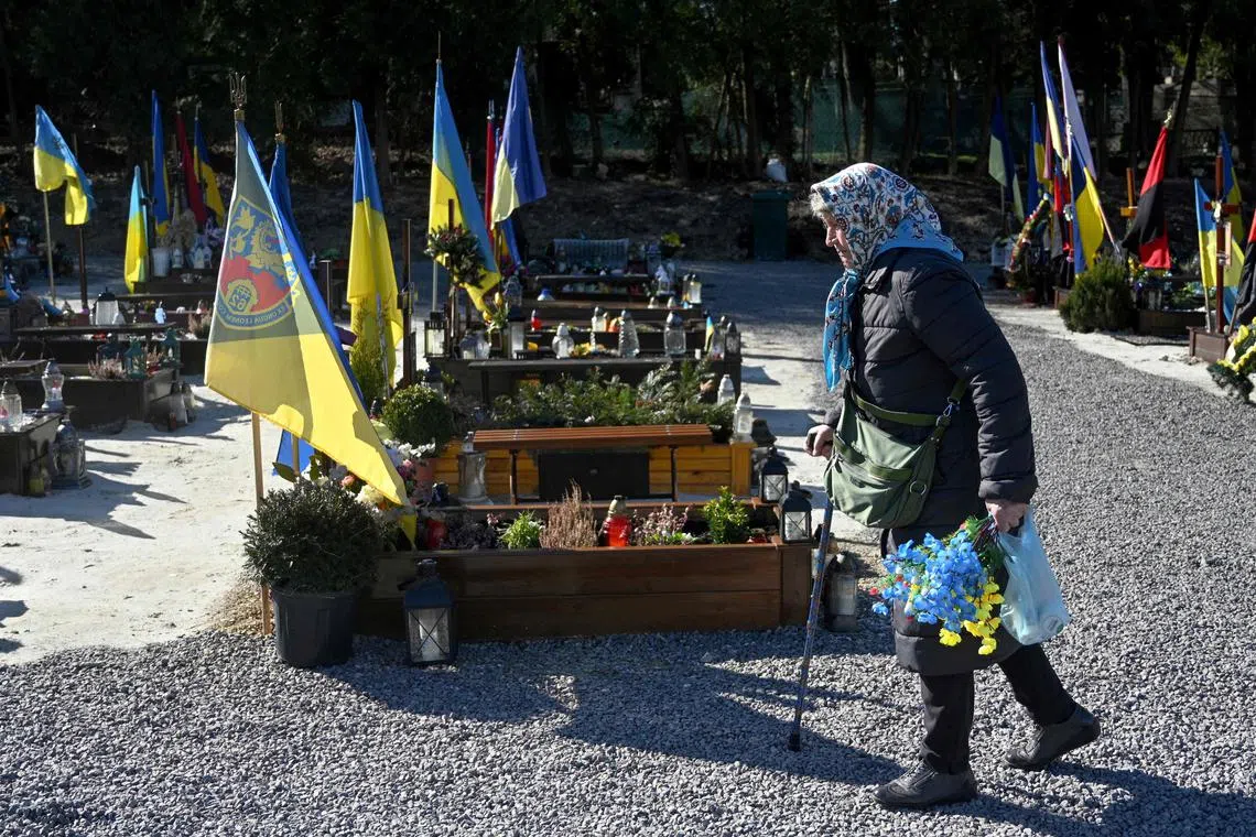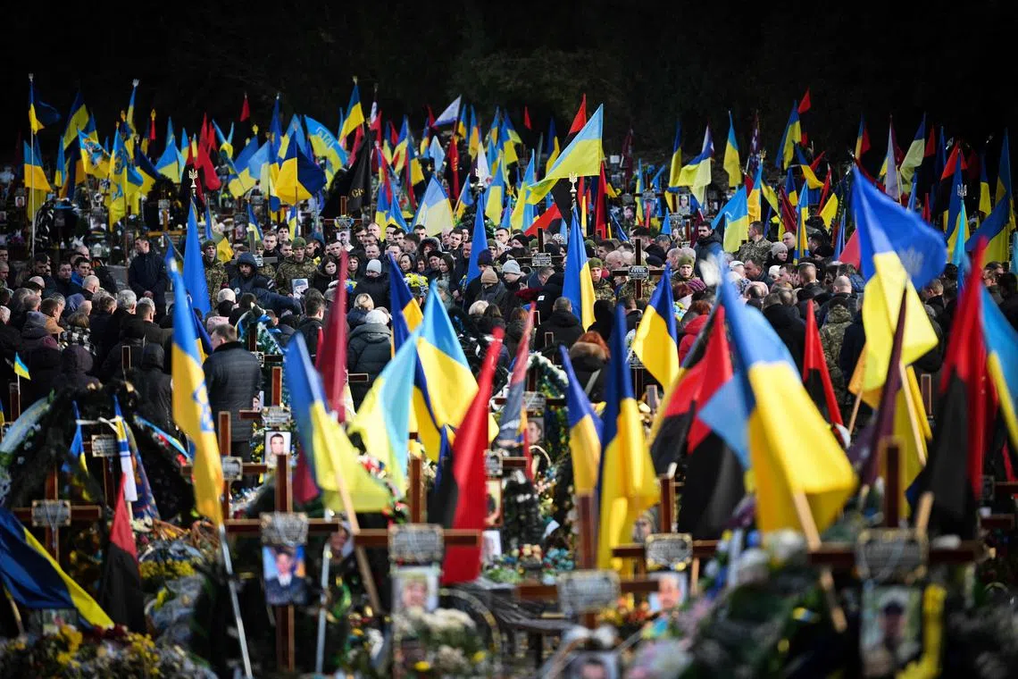 Since Russia invaded Ukraine over a year ago, rows of new graves have appeared. A sea of blue-and-yellow Ukrainian flags and red-and-black nationalist banners mark them.