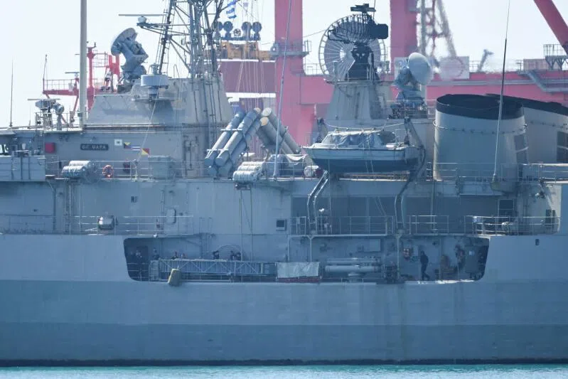 A Greek frigate docked at a port in Cyprus in March. A government spokesman for Cyprus said the French President’s visit will let the leaders of Cyprus, Greece, and France to assess the “high level of coordination” between their nations.
