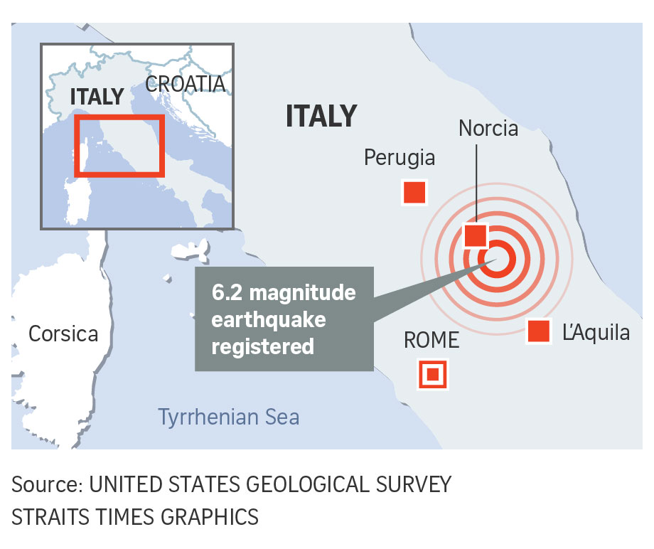 Most of the damage was in the Lazio and Marche regions, with Lazio bearing the brunt of the devastation and the biggest toll. Neighbouring Umbria was also affected. All three regions are dotted with centuries-old buildings susceptible to earthquakes.