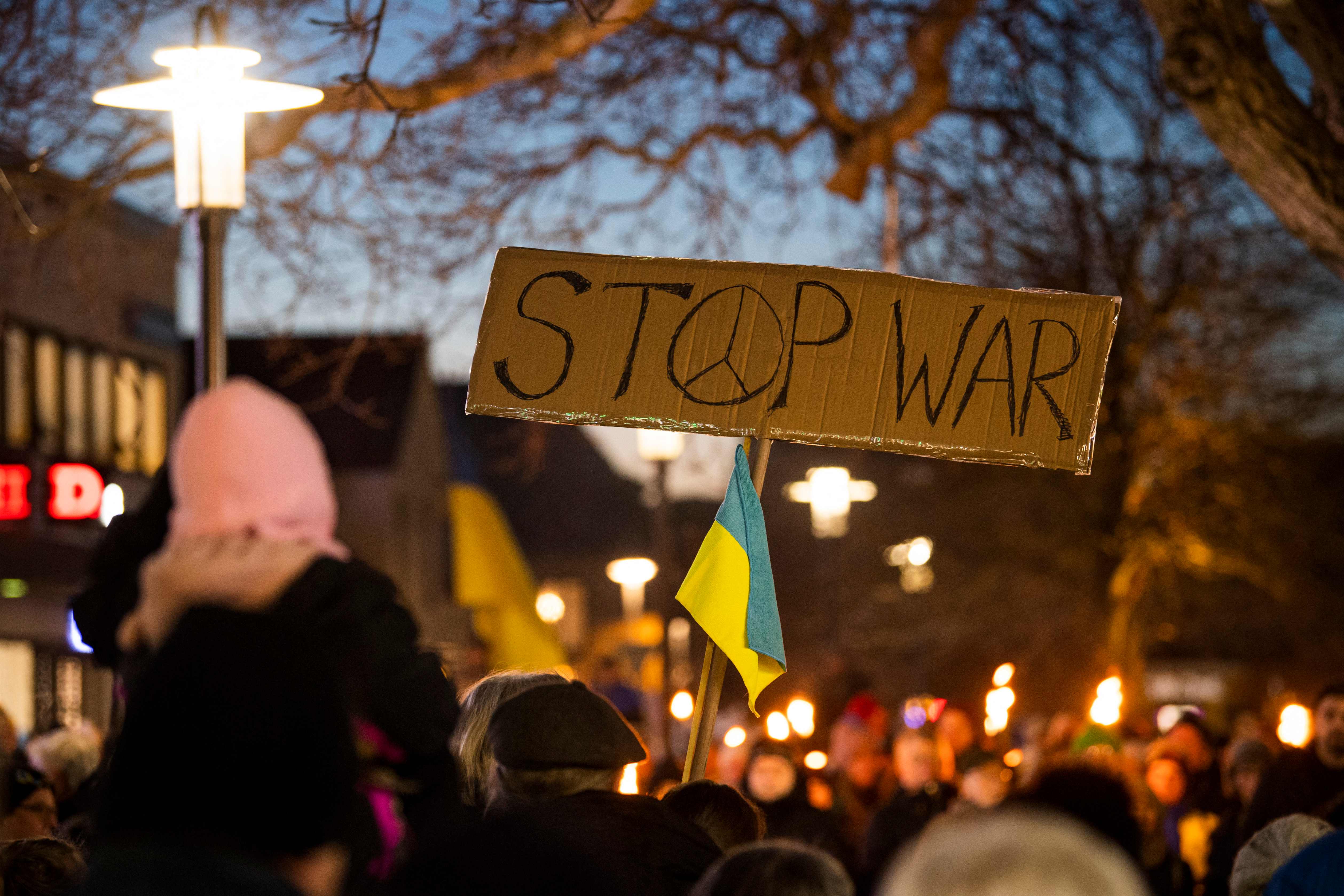 People protest against Russia's invasion of Ukraine, on Sweden's Gotland island, on March 3, 2022.