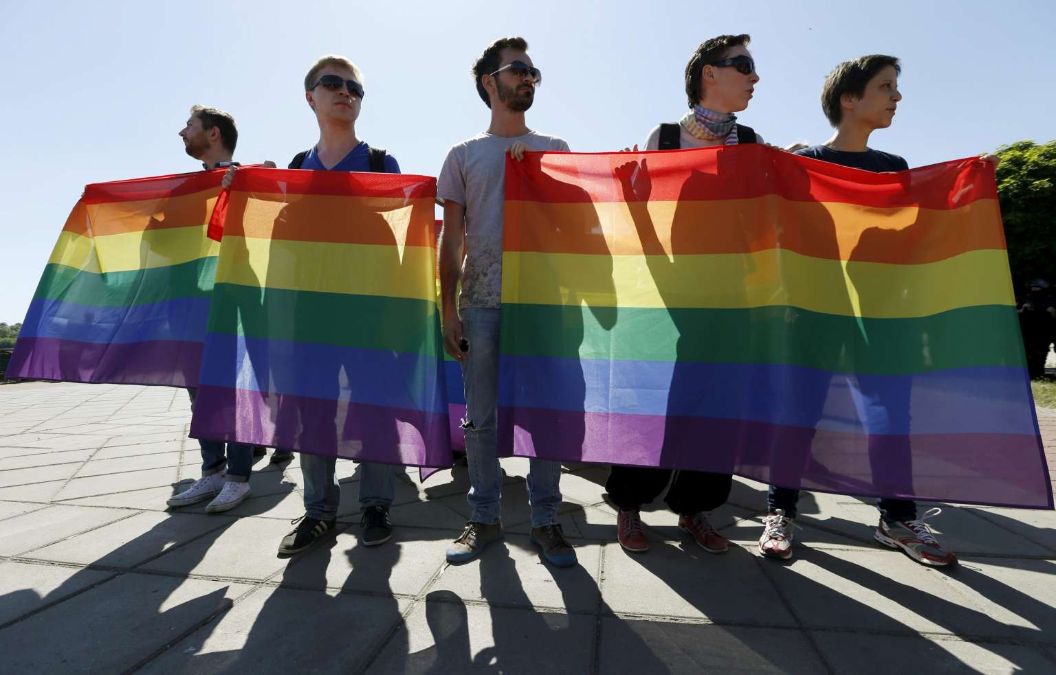 Activists march for equality for the lesbian, gay, bisexual and transgender (LGBT) community, in Kiev, Ukraine, in June 2015.