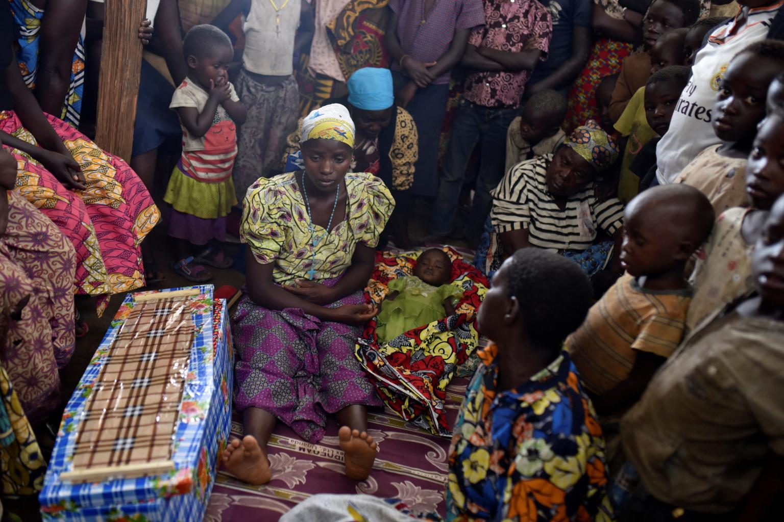 In a photo from June 25, 2019, Congolese victims of ethnic violence prepare the burial of a child suspected to have died of measles in Bunia, Ituri province in the Democratic Republic of Congo.
