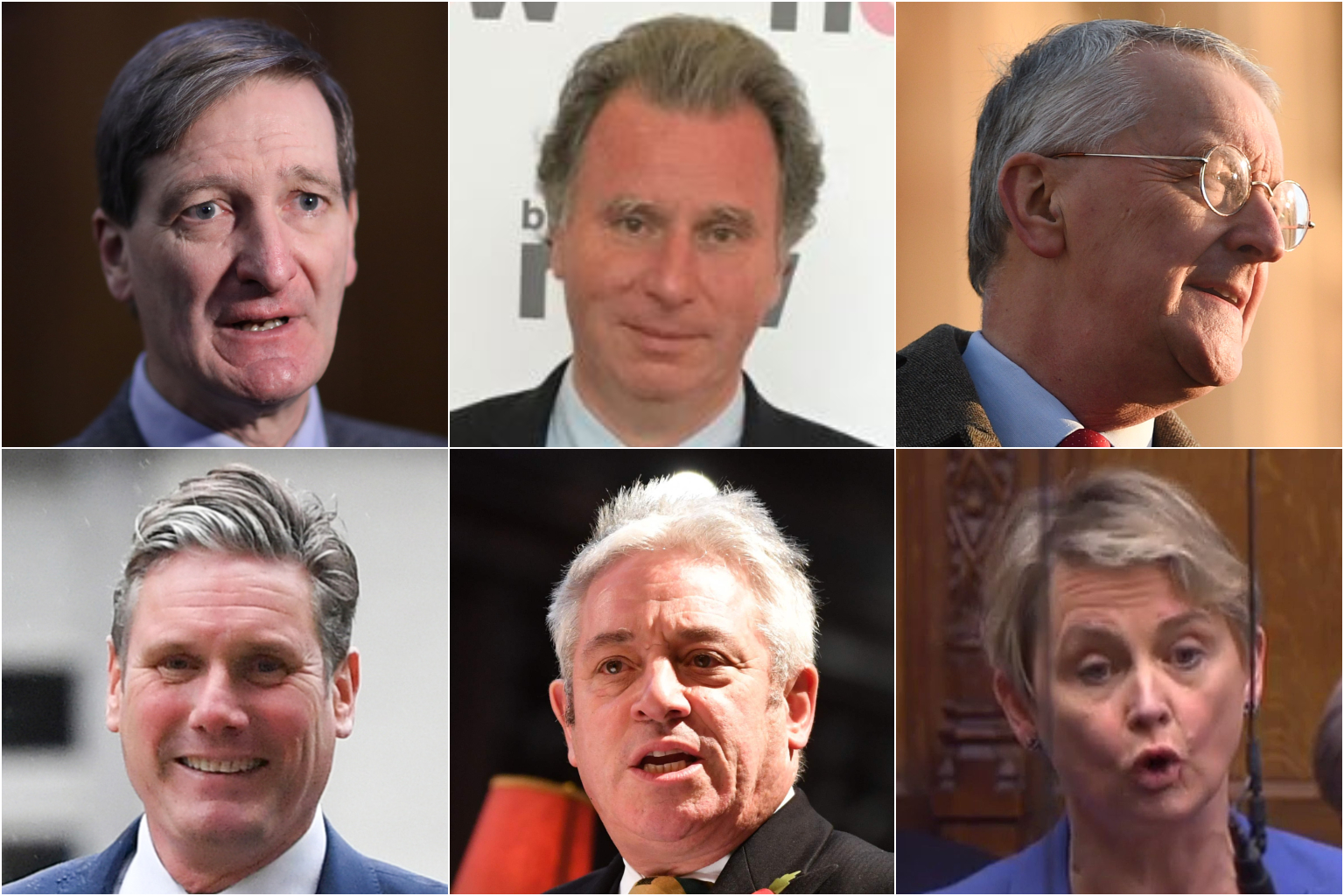 (Clockwise from top left) Mr Dominic Grieve, Mr Oliver Letwin, Mr Hilary Benn, Ms Yvette Cooper, Mr John Bercow, and Mr Keir Starmer.