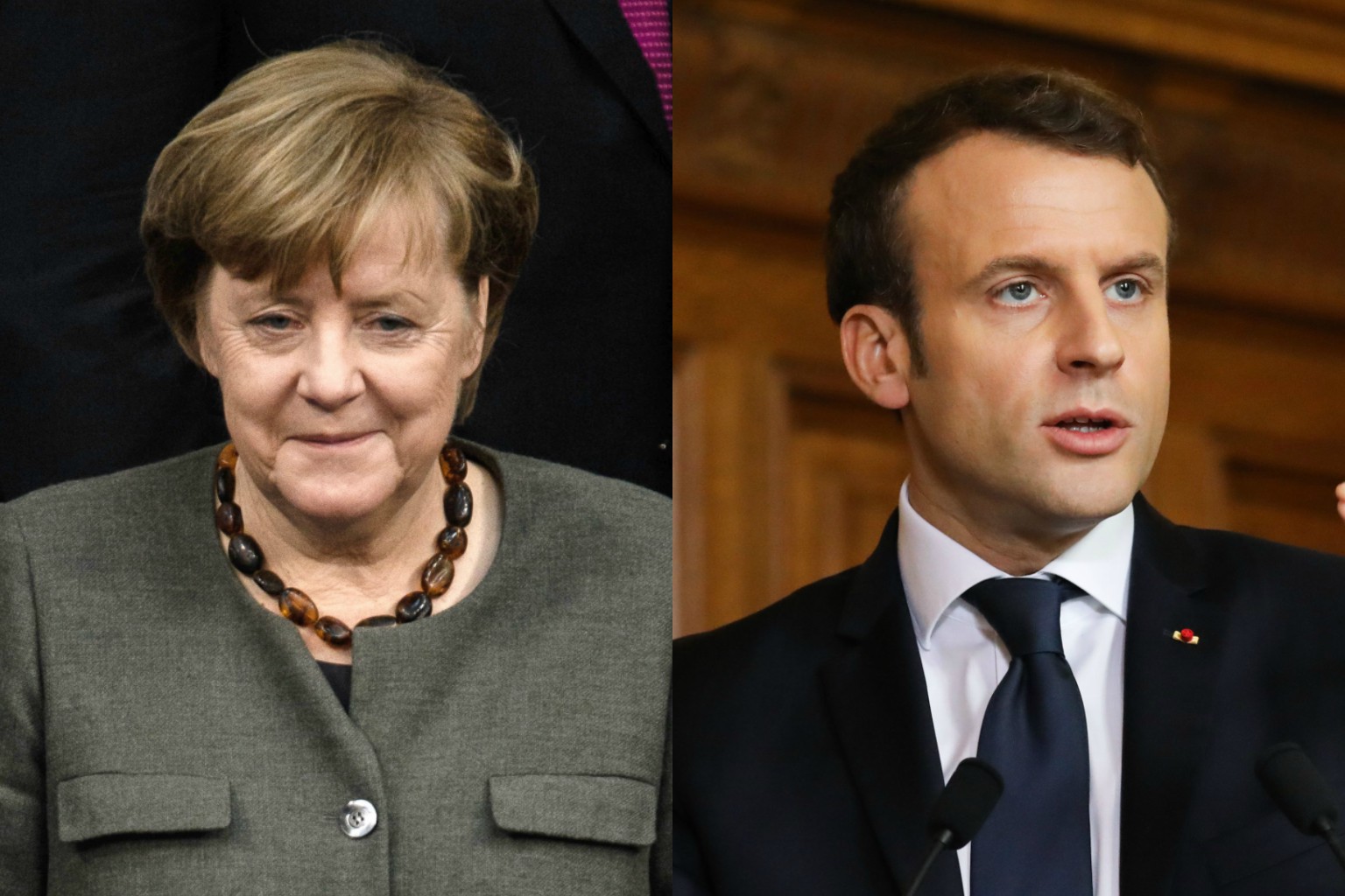 French President Emmanuel Macron (right) will drive for a 'renaissance' in French and world business while German Chancellor Angela Merkel needs to settle her own leadership problems.