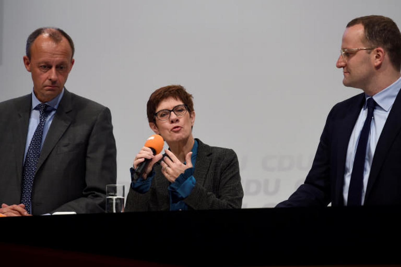 BERLIN (REUTERS) - The three candidates competing to succeed German Chancellor Angela Merkel as leader of the Christian Democrats (CDU) agreed on Thursday (Nov 15) to revive their party's fortunes by cutting taxes and reducing Germany's dependence on the United States for defence.