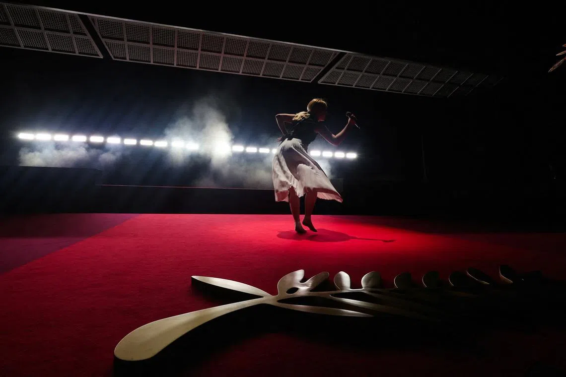Gerwig sang along and seemed visibly touched by the performance as de Sagazan got on stage to kiss her hand.