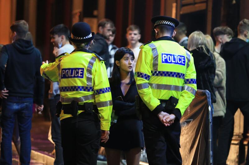 British police patrolling central Liverpool on Oct 10, 2020.