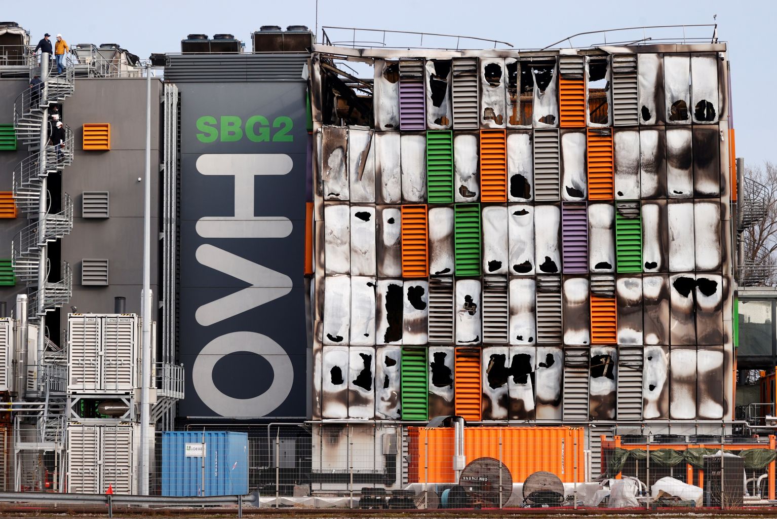 A view shows the damaged building of French cloud computing company OVHcloud after a fire broke out, in Strasbourg, France.