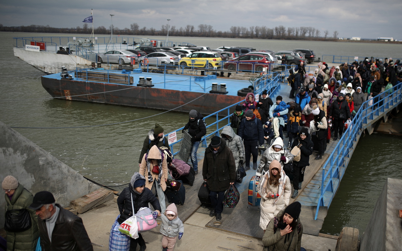 <p>People arrive by ferry after fleeing from Russia's invasion of Ukraine, at the Isaccea-Orlivka border crossing, Romania, March 6, 2022. REUTERS/Stoyan Nenov</p>
