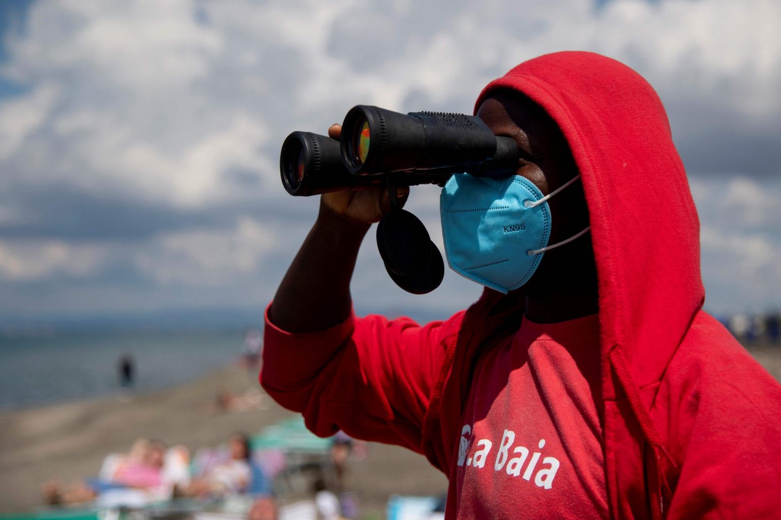 A lifeguard on Fregene beach near Rome on May 30, 2020, as private beaches reopened in Italy.