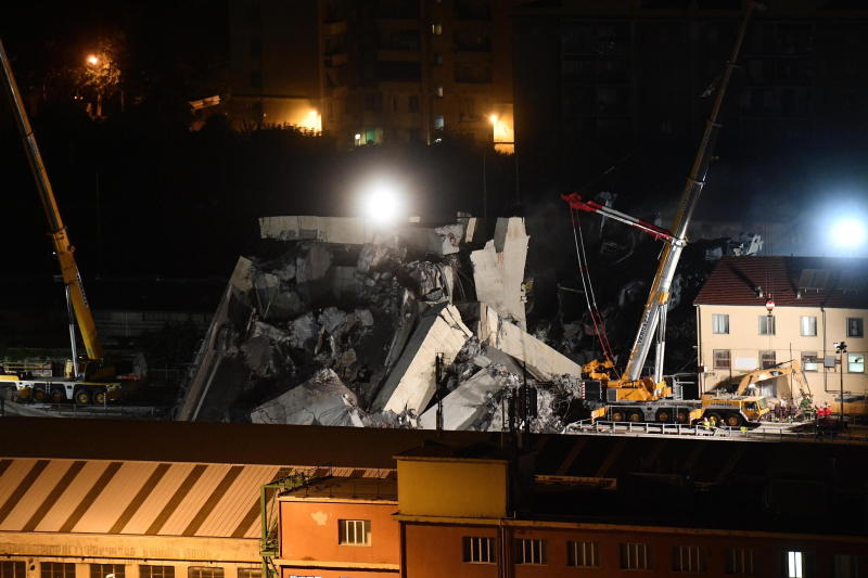 Night view of the Morandi bridge collapsed in Genoa, Italy, on Aug 15, 2018.