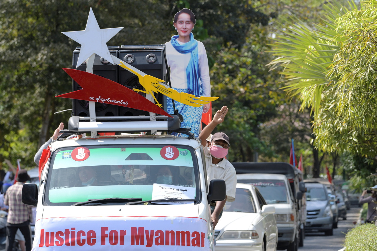 She was detained with dozens of other members of her National League for Democracy party, including President Win Myint, ending a decade of civilian rule and triggering international condemnation.