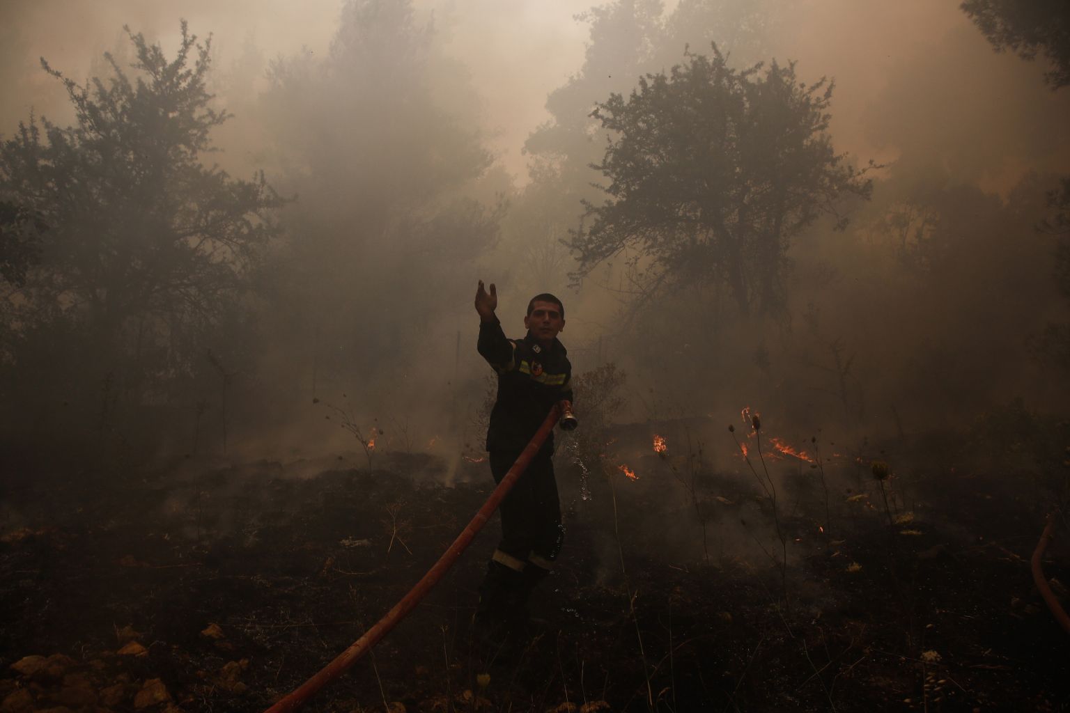 A firefighter at work to extinguish a wildfire in the area of Stamata, in north-eastern Athens, on July 27, 2021.