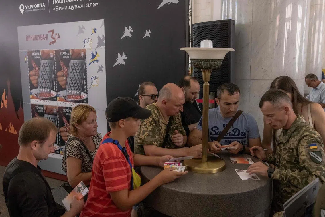 Hundreds of people queued up in Kyiv’s main post office to buy the newly designed stamp with a matching envelope.