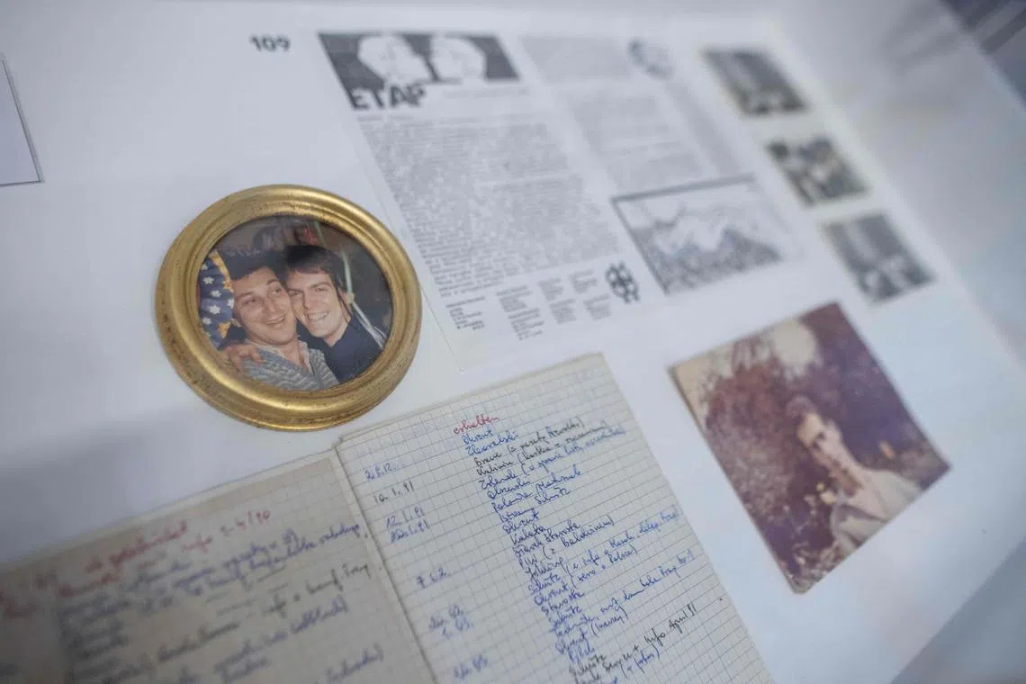 A picture showing LGBTQ rights activist Andrzej Selerowicz (left) and his partner in their young age is exhibited among other items during the opening of Poland’s first Queer Museum on Dec 6.
