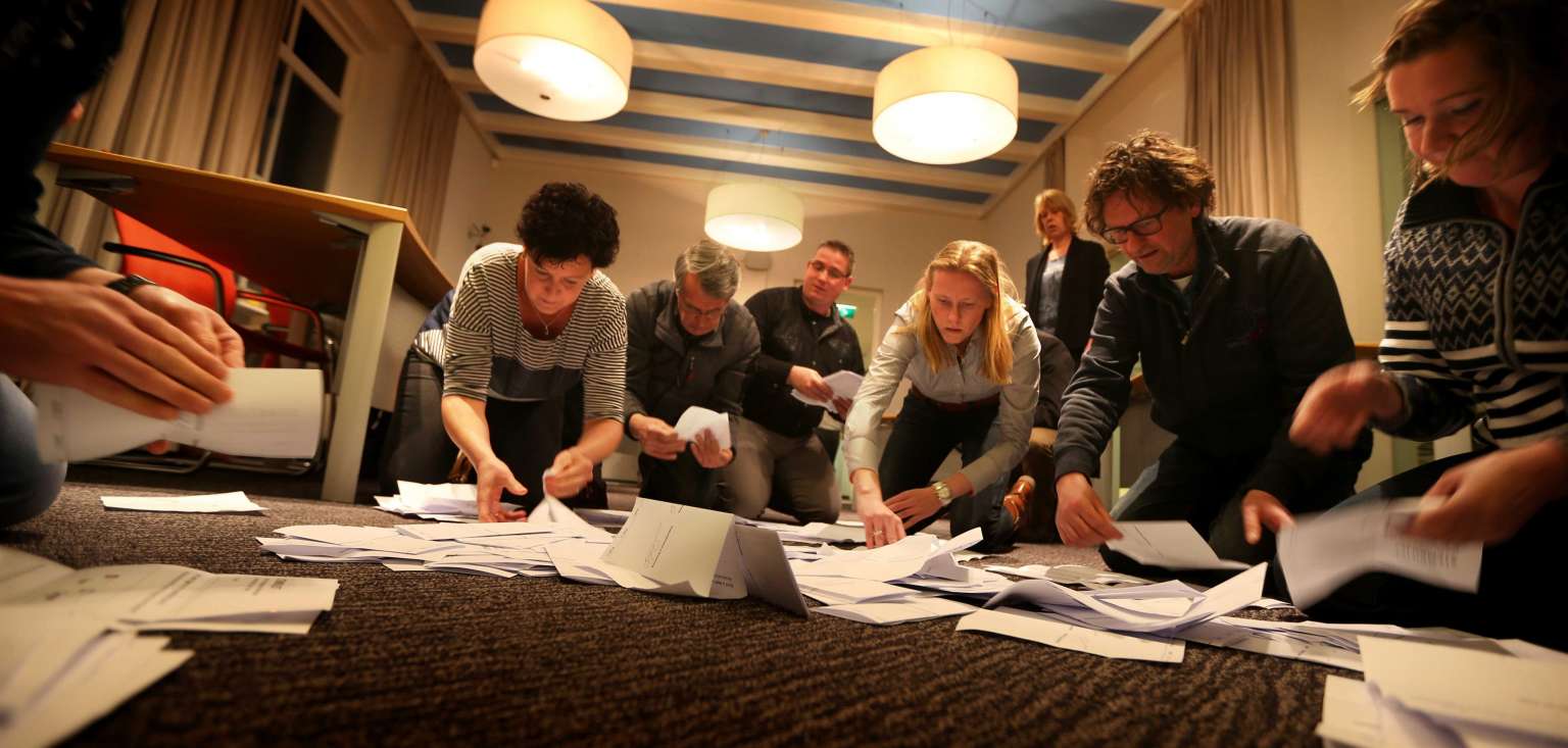 Officials count the votes of the Dutch referendum about the association agreement between the EU and Ukraine.