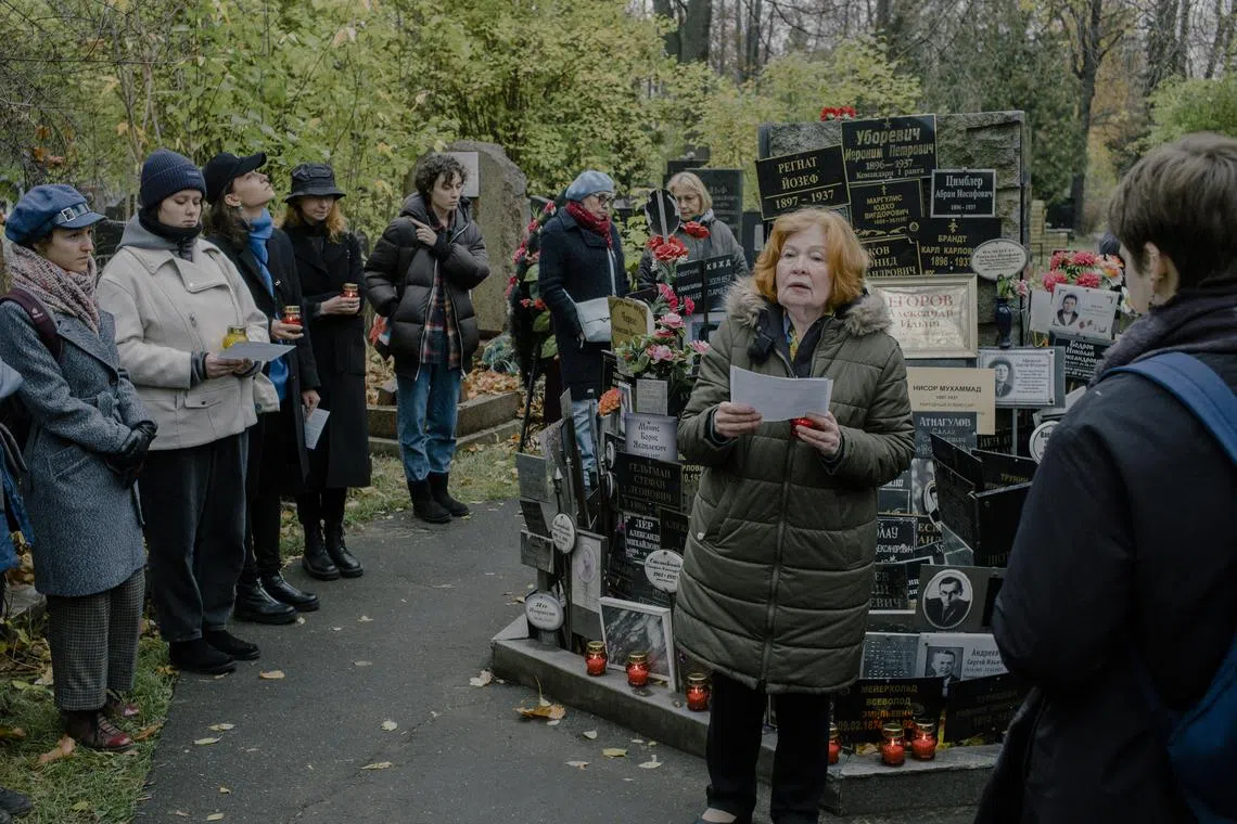 A reading of names of Stalin’s victims during a guided tour with Memorial at the Donskoye cemetery in Moscow on Oct 28.