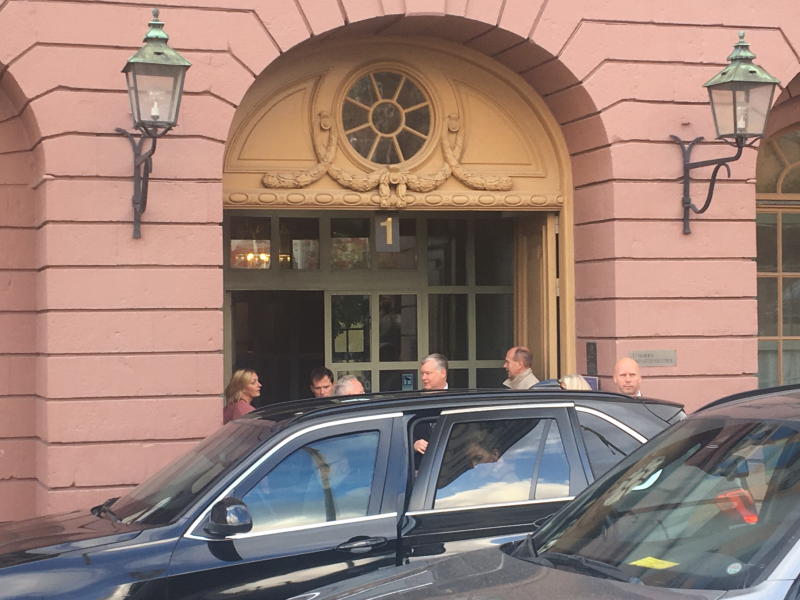 The first cars with tinted windows started arriving just after 9am (3pm Singapore time).