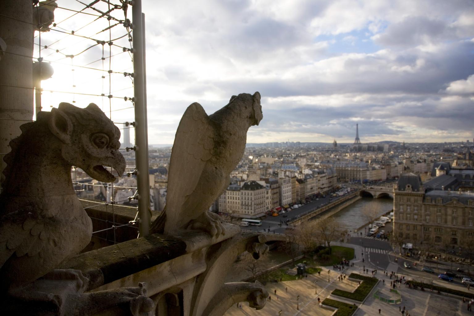 The most famous of these, the Stryge gargoyle, sits atop the cathedral watching Paris with its head resting in its hands.