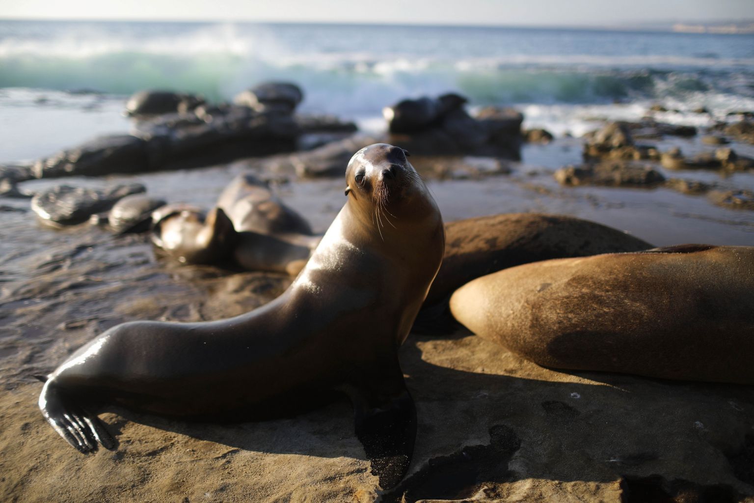 A 2018 photo shows sea lions sunbathing on the Pacific Ocean coast amid record temperatures..