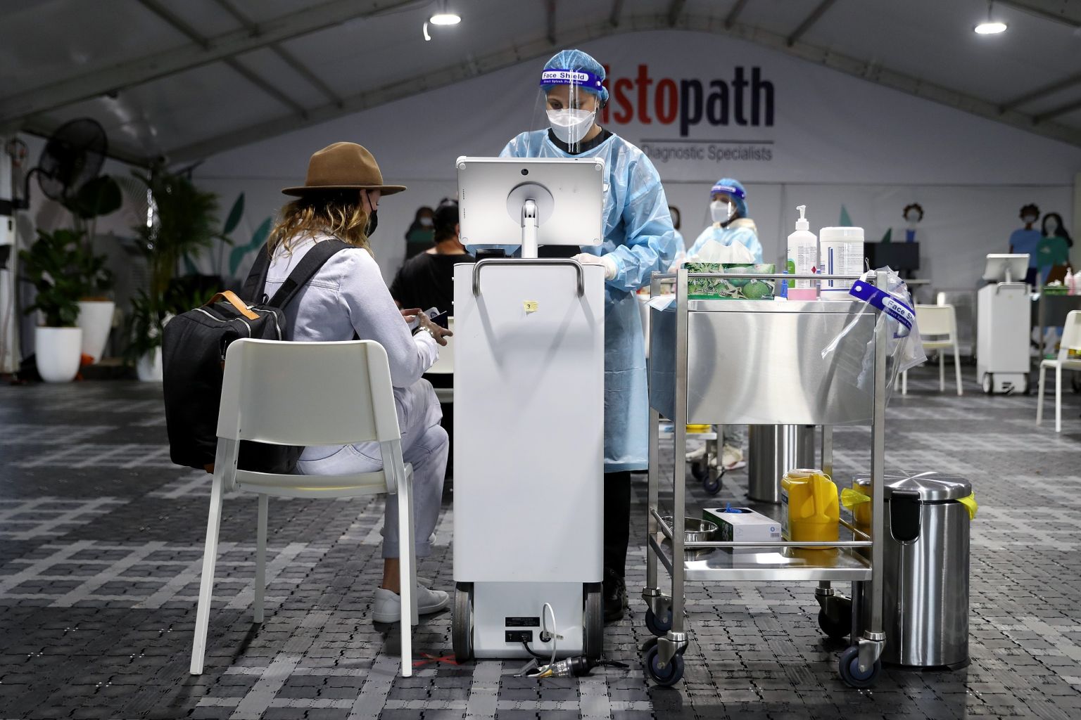 Travellers receive Covid-19 tests ahead of their flights at Sydney Airport in Australia, on Dec 7, 2021.