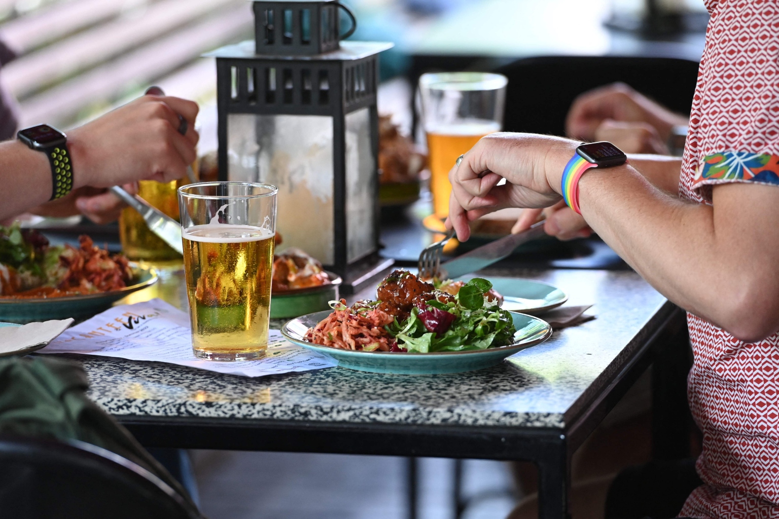 A client eats some food at The Canteen restaurant in Britain on Aug 3, 2022.