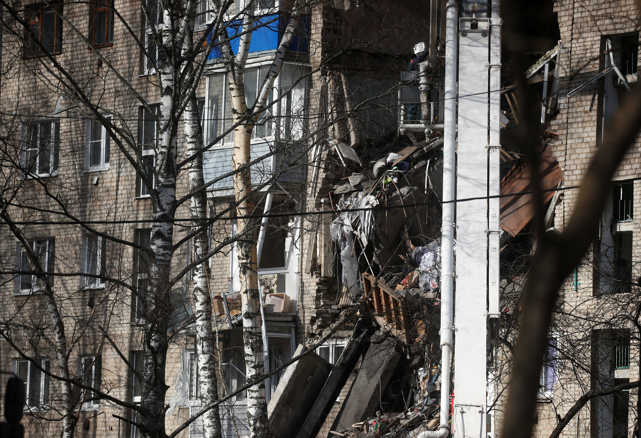An apartment block, which partially collapsed after an apparent gas explosion, in Russia on April 4, 2020.