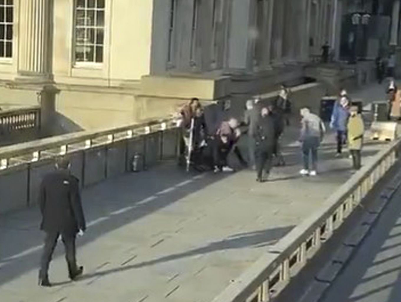 A video grab shows the attacker surrounded by members of the public before armed police arrive.