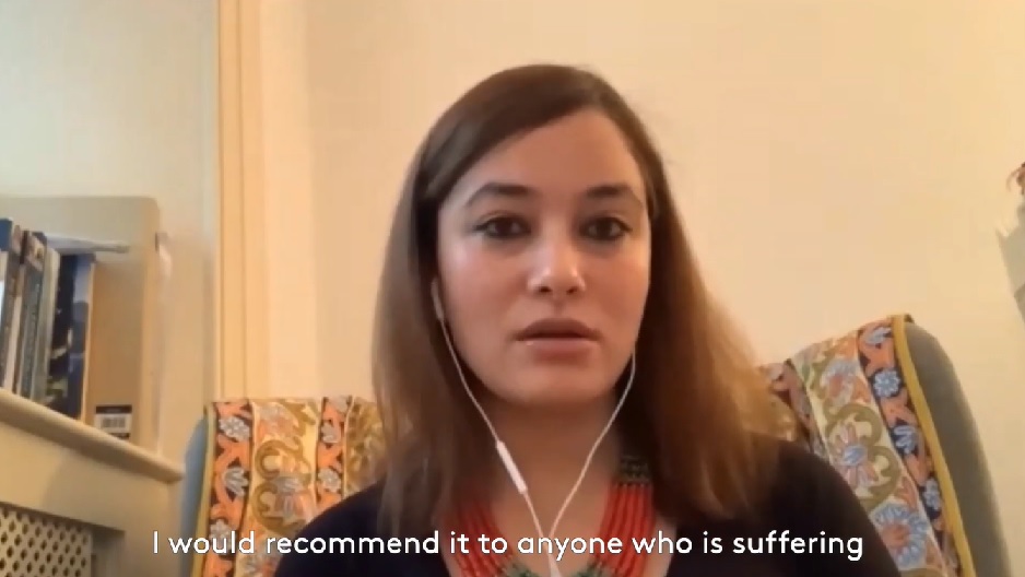 A screenshot featuring Covid-19 patient Sheeba, who benefited from the beathing techniques.