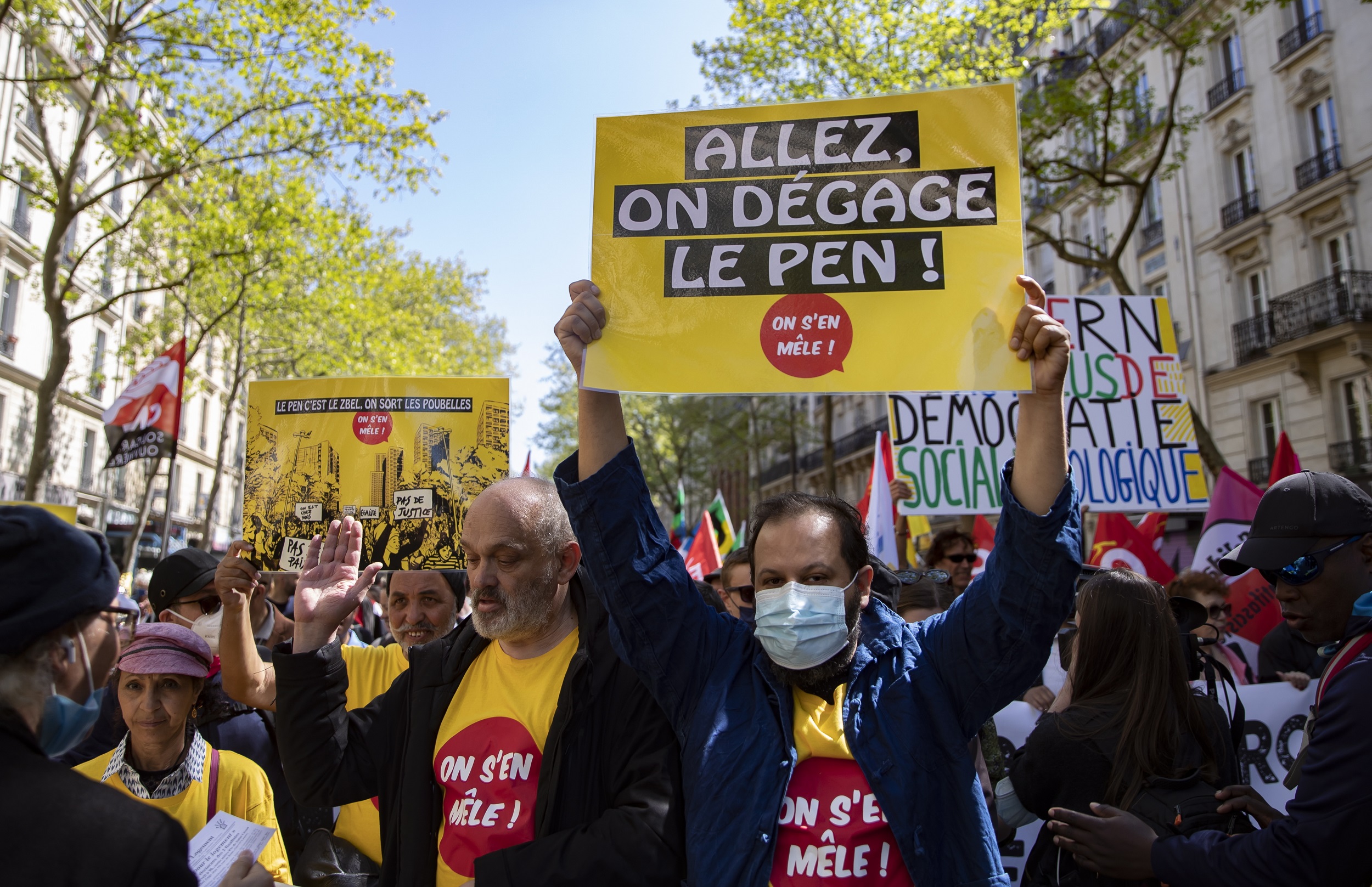 One banner read: "Against the far-right. For justice and equality, not Le Pen at the Elysee," referring to the French president's official residence.