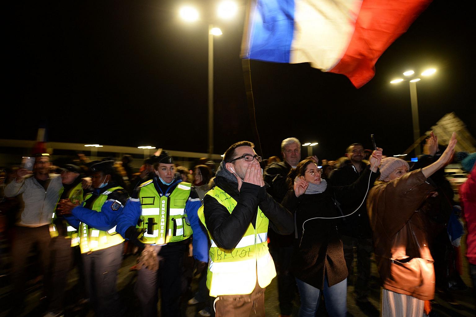 PARIS (REUTERS) - A convoy protesting Covid-19 restrictions breached police defences and drove into central Paris on Saturday (Feb 12), snarling traffic around the Arc de Triomphe and on the Champs Elysees, as police fired tear gas at demonstrators.