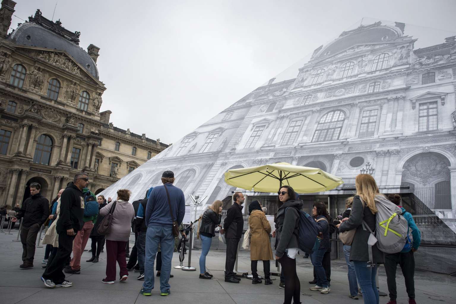Tourists stand outisde the Louvre Museum closed to public as artworks have to be moved due to flooding of the Seine River in Paris, on June 3, 2016.