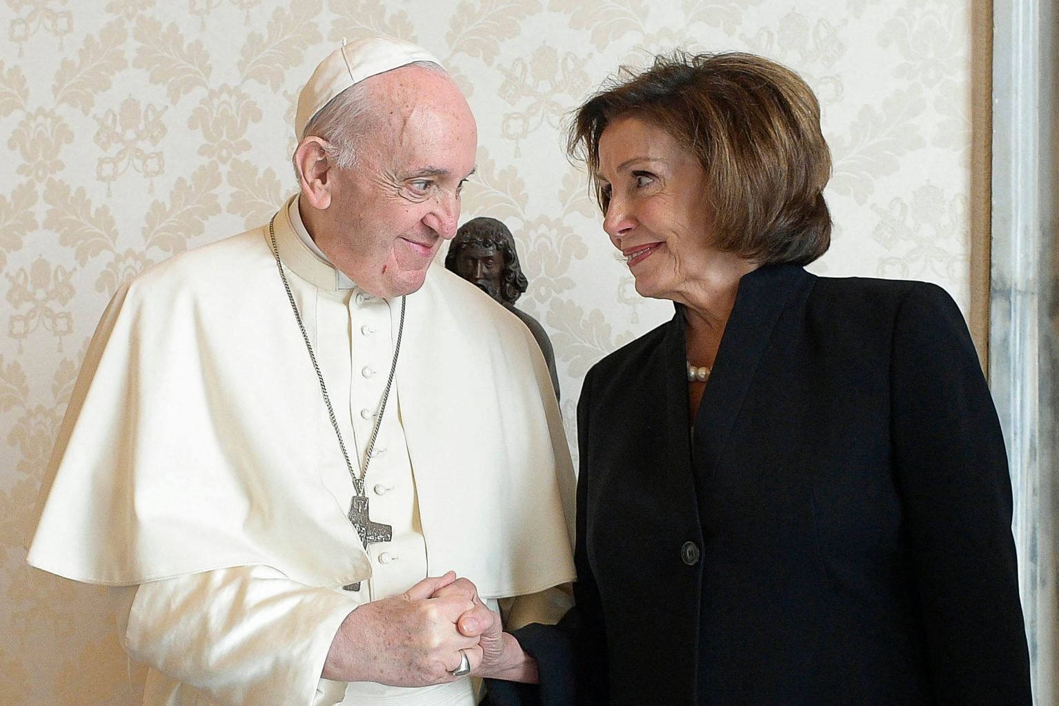 Pope Francis with US Speaker of the House Nancy Pelosi during a private audience at the Vatican.