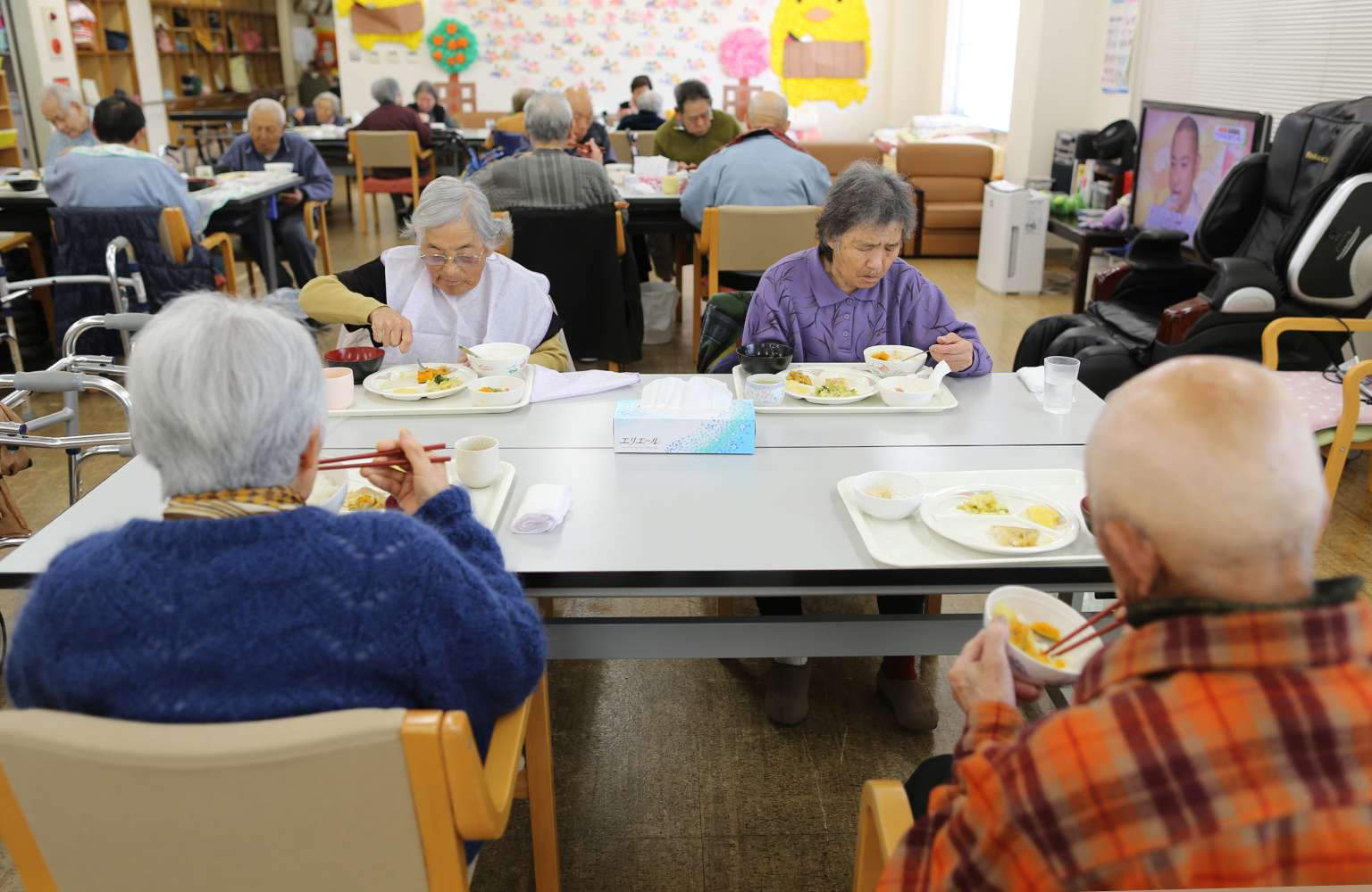 Elderly people at a day care facility on Gogo Island in Ehime Prefecture, Japan, on March 22, 2013.
