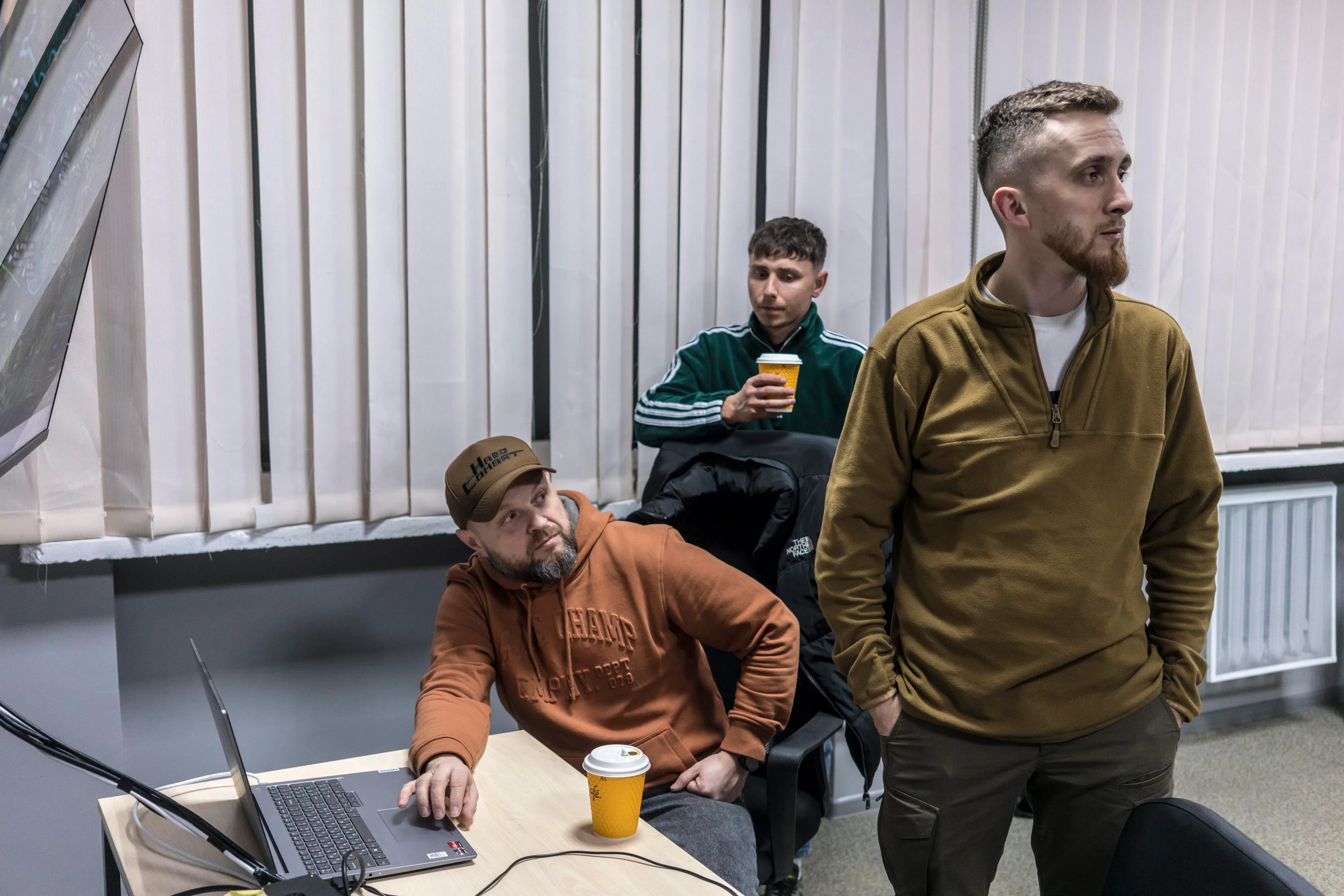 Operators working in a secret office space sat sipping coffee from cardboard takeout cups and scrolling on their phones until a Russian attack drone appeared on the radar.