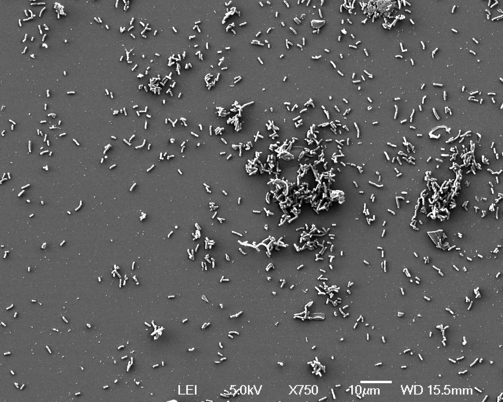 Yersinia pestis bacteria are pictured under an electron microscope.