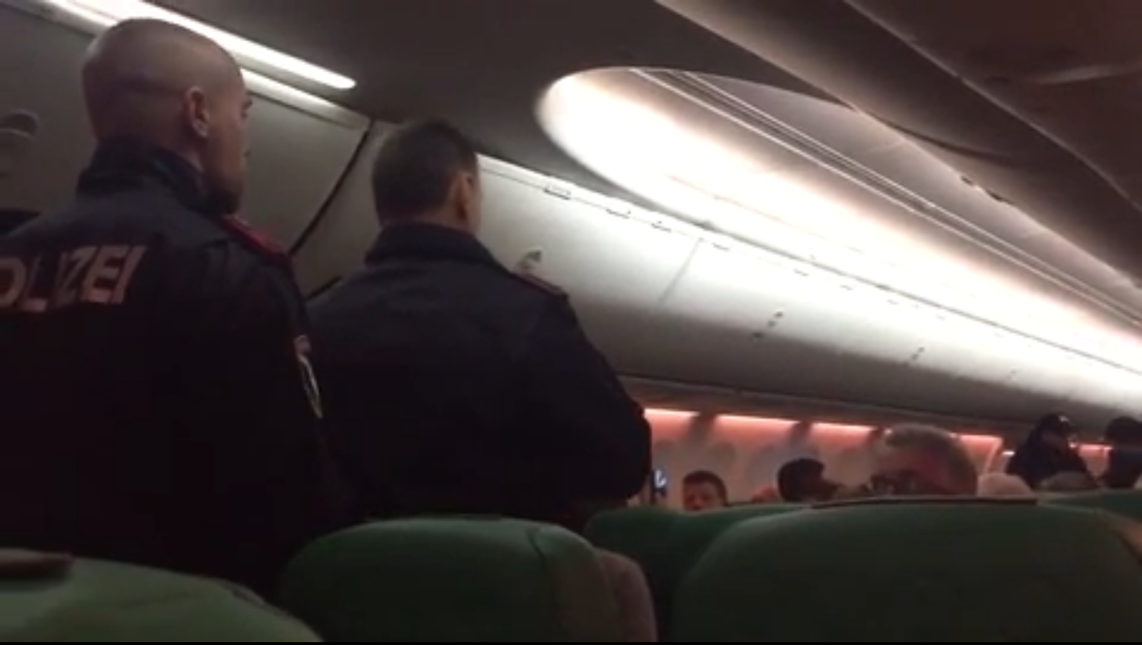 Austrian police officers on board the aircraft, after the plane made an unscheduled stop in Vienna International Airport after a fight broke out.