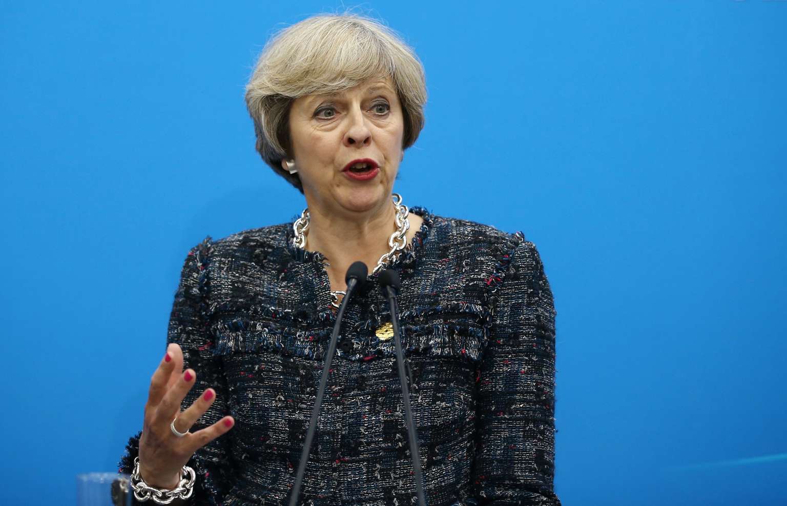 British Prime Minister Theresa May speaks at a news conference after the closing of G20 Summit in Hangzhou, China on Sept 5, 2016.