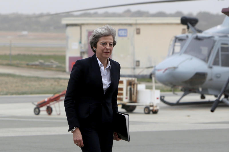 British Prime Minister Theresa May visiting RAF Akrotiri, one of two military bases Britain maintains on the east Mediterranean island of Cyprus, on Dec 22, 2017.
