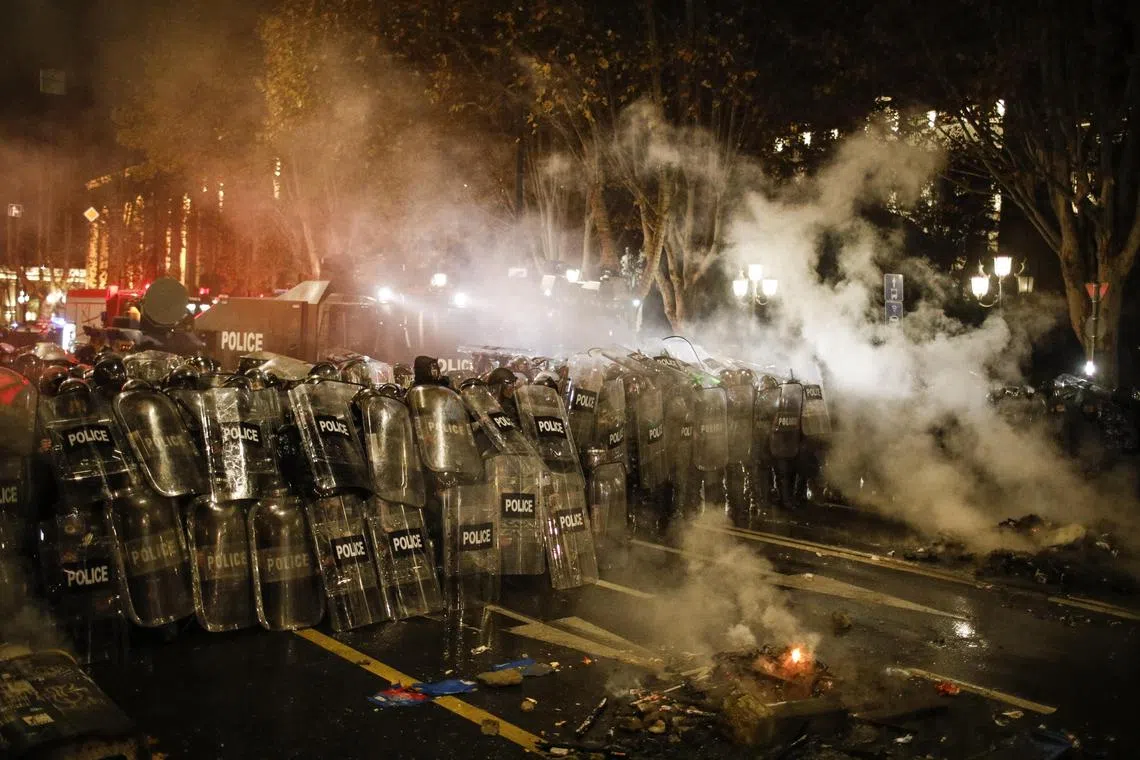 Police use water cannon and tear gas to disperse Georgian opposition supporters as they protest in front of the Parliament building in Tbilisi, Georgia, on Nov 29.