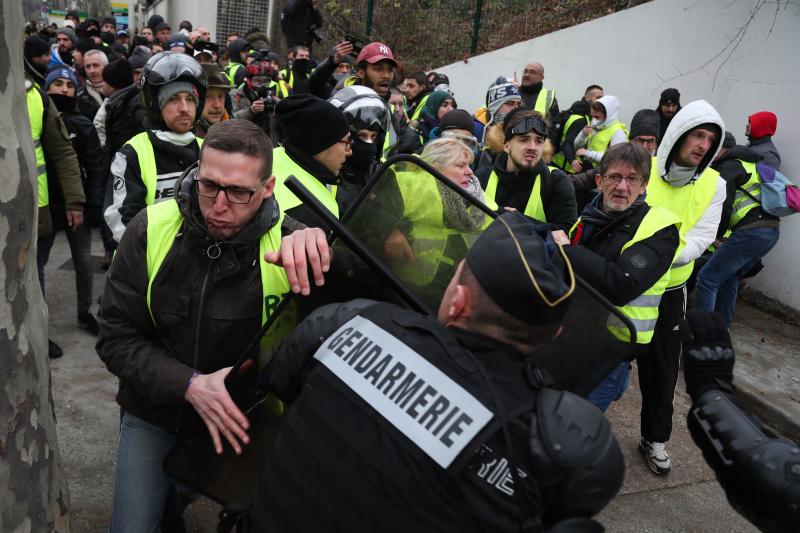 "Yellow vest" protesters clash with police officers in Paris on Dec 29, 2018.