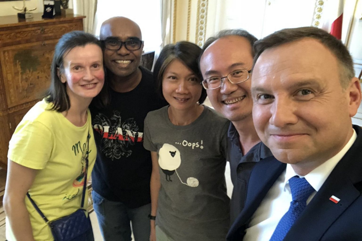 The conversation lasted about 20 minutes before Mr Duda had to leave for a meeting. He did not forget to take a selfie with the group, which he later posted on his personal Twitter account.