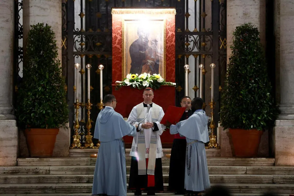 Cardinal Rolandas Makrickas leading a prayer service at the Papal Basilica of Santa Maria Maggiore, after the funeral of Pope Francis, in Rome
