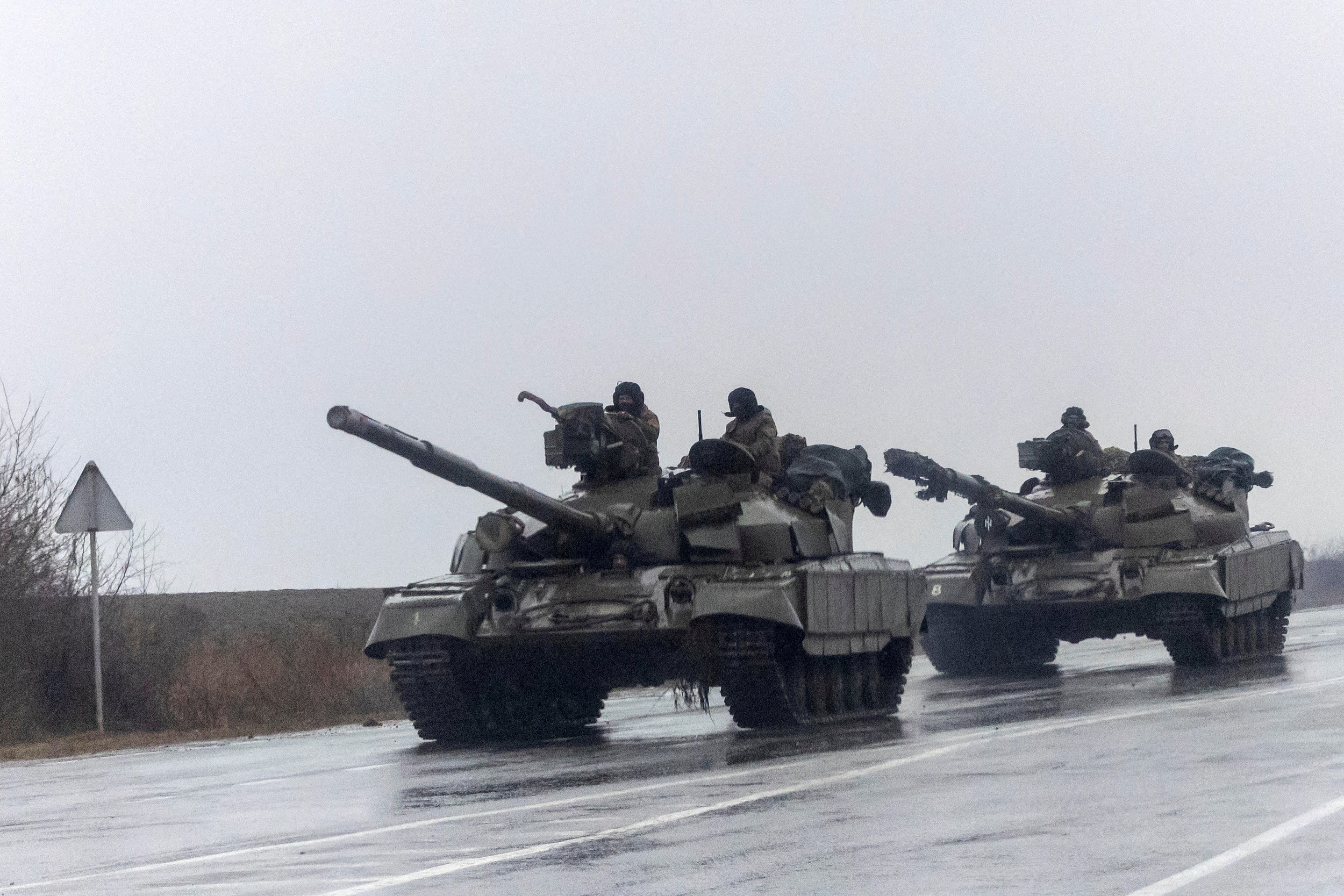 Ukrainian tanks move into Mariupol, on Feb 24, 2022, after Russian President Vladimir Putin authorised a military operation in eastern Ukraine.