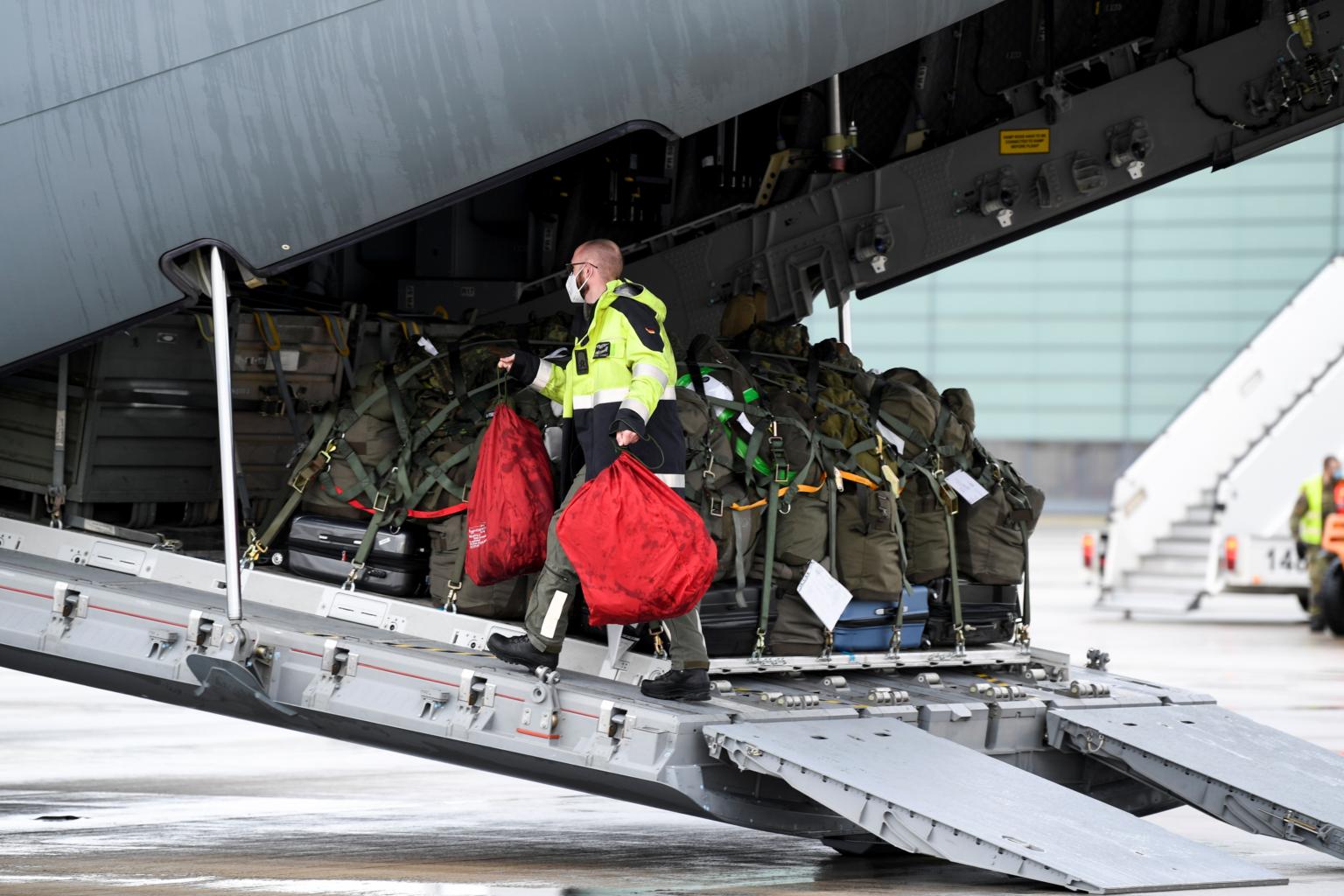 A military transport plane carrying 26 doctors, nurses and hygiene experts as well as 40 mobile and 10 stationary ventilators left for Lisbon.